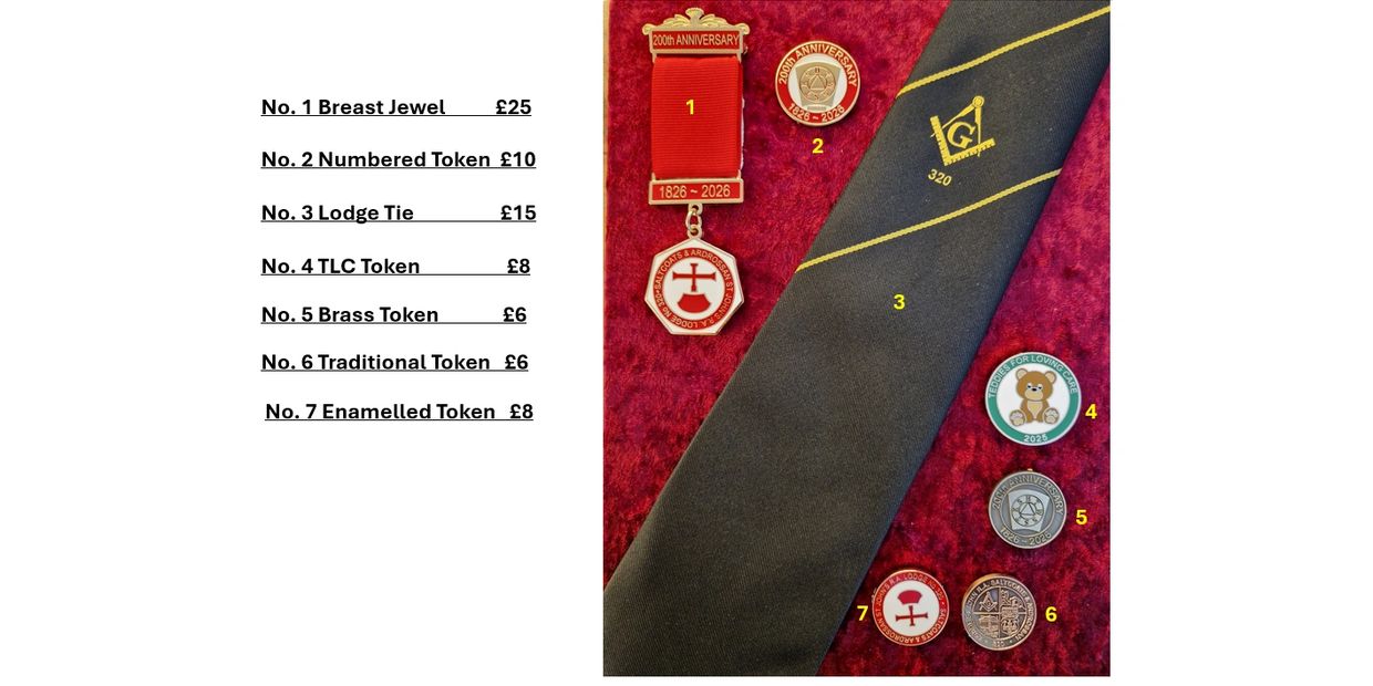 If you are interested in purchasing any of the above items, please don't hesitate to get in touch with our Lodge Treasurer at lodge320finances@gmail.com